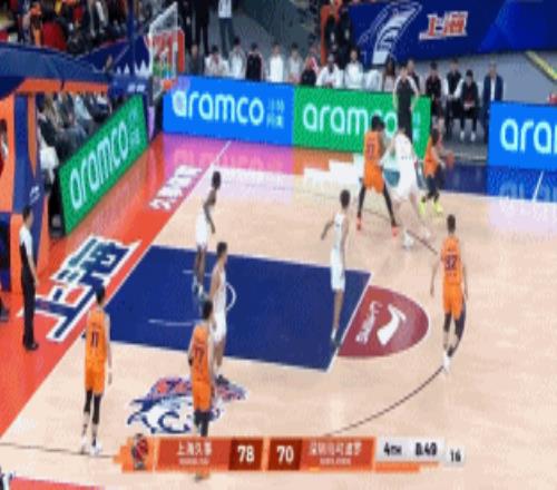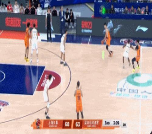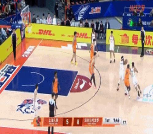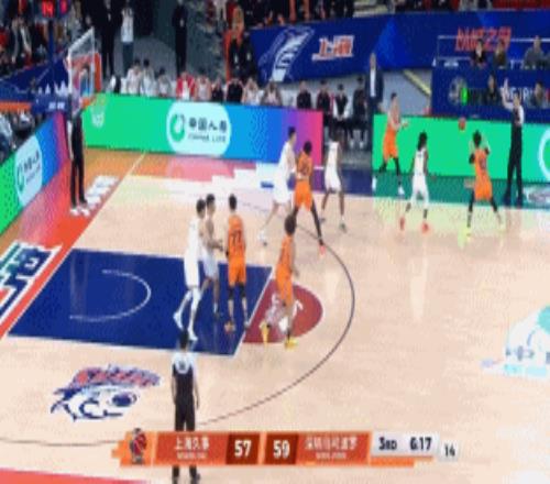6分17秒,上海落后2分,盧偉重新?lián)Q回白邊,洛夫頓翻身跳投再得手,偰李永煒打進(jìn)個(gè)人第3記中投,上海馬上一波6-0反超深圳63-59。