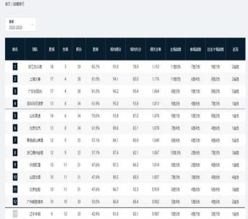 CBA積分榜最新排名!3隊(duì)哄搶第一,黑馬殺進(jìn)前4,遼寧跌出季后賽