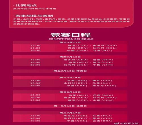 2026年女籃世界杯預(yù)選賽將于3月11日-17日舉辦,中國(guó)女籃將坐鎮(zhèn)主場(chǎng)武漢比賽。中國(guó)女籃的5場(chǎng)比賽具體賽程時(shí)間...