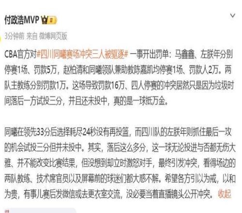 同曦罰單四川隊左朕年四川省cba聯(lián)賽cba賽季CBA同曦四川沖突罰單出爐