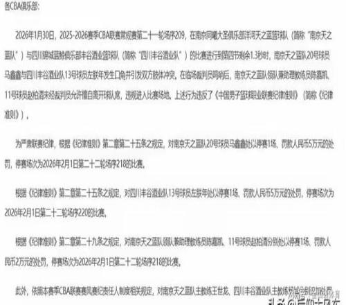2月1日CBA公司挺忙,一口氣出了兩份罰單,這也是聯(lián)賽到了中期經(jīng)常出的現(xiàn)象,競(jìng)爭(zhēng)越來(lái)越激烈,球員難免有情緒過(guò)激的...