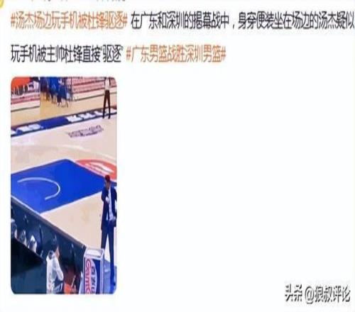 外界重點關注湯杰玩手機,大概率是廣東對陣深圳的比賽,杜鋒要求年輕球員需要認真看比賽,但湯杰在替補席后面玩手機,怒氣值拉滿杜鋒直接驅(qū)逐了湯杰離場。