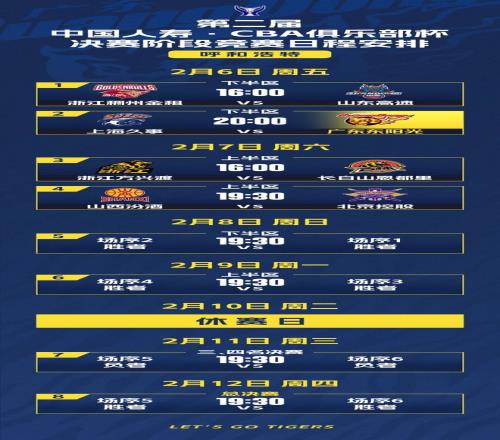俱 樂 部 杯 2月6日-12日,第二屆CBA俱樂部杯決賽階段將在內(nèi)蒙古自治區(qū)呼和浩特市內(nèi)蒙古體育館舉行。明晚20點(diǎn)...
