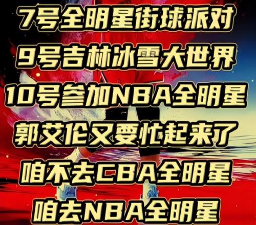 也許有人看到郭艾倫并沒有入選今年的CBA全明星陣容,連替補(bǔ)名額都沒有撈著會(huì)替他惋惜吧?殊不知,郭艾倫這個(gè)窗口期的行程排得那是相當(dāng)?shù)臐M,跟廣東宏遠(yuǎn)隊(duì)的胡明軒一起參加活動(dòng)只是開胃菜,。7號(hào)他將出現(xiàn)在全明星街球派對(duì)現(xiàn)場(chǎng),9號(hào)回東北老家去吉林參加活動(dòng)。10號(hào)真正的重頭戲來了,他將再次以嘉賓身份參加NBA全明星活動(dòng),雖然丟了芝麻,但是卻撿了一個(gè)大西瓜,豈不是賺大發(fā)了嗎?