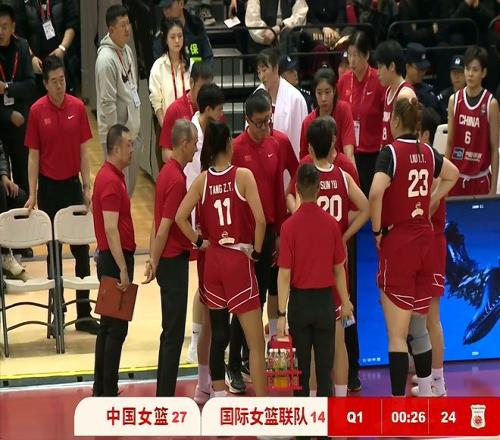 上半場中國女籃54比43領先。兩隊目前都只命中一記三分,羅欣棫和陳明伶得分上雙,兩人合計21分。兩隊罰球對比,中國女籃31次對8次。