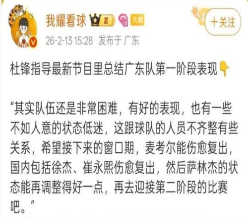 杜鋒表態(tài)廣東男籃非常困難劉煒離開新疆男籃山東男籃鎖定新外援