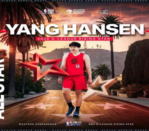 楊瀚森以G聯(lián)賽身份入選2026年NBA全明星新秀挑戰(zhàn)賽,隊友分別是肖恩-伊斯特二世(鹽湖城星)、小羅恩-哈珀(緬因凱爾特人)、加西亞(奧斯汀馬刺)、尼德豪澤(圣迭戈快船)、阿利賈·馬?。妄?05)和牛頓(毒蛇),主帥為小里弗斯。