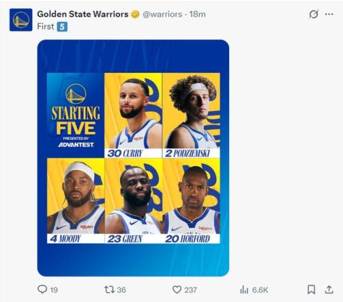 勇士此役的先發(fā)陣容跟上一場沒有變化。