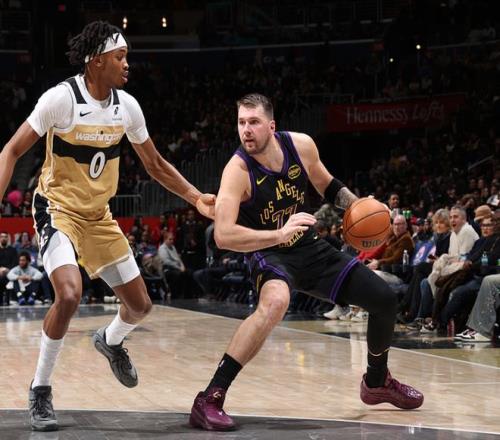 湖人客場挑戰(zhàn)奇才,湖人少了里夫斯,奇才是背靠背作戰(zhàn)(昨日擊敗雄鹿)且少了特雷楊、米德爾頓、巴格利、特雷約翰遜、惠特莫爾,就紙面實力而言他們遠不如湖人,湖人優(yōu)勢巨大,很快取得大比分領(lǐng)先,一度領(lǐng)先38分,最終湖人142-111大勝奇才。東契奇21中13(三分13中6)砍下37分11板13助3斷,艾頓14中12得到28分13板3助3帽,詹姆斯16中8(三分3中2)得到20分3板6助2斷,奇才方面薩爾14中8得到16分6板5助2斷、喬治12中5得到15分3板6助2帽。