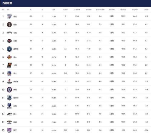 西部排名大亂斗!火箭與湖人壓力巨大,勇士迎來(lái)建隊(duì)岔路口,快船隊(duì)20戰(zhàn)16勝?gòu)?qiáng)勢(shì)北伐坐穩(wěn)前10。1-3名:雷霆(38勝11負(fù))...