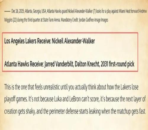 美媒建議湖人3換1老鷹極品3D,場均20+4后衛(wèi)加盟湖人,馳援東詹
