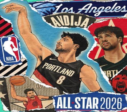 開(kāi)拓者主場(chǎng)球迷鼓掌祝賀阿夫迪亞首次入選全明星,阿夫迪亞起立致謝,楊瀚森在一旁鼓掌祝賀。
