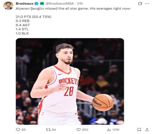 申京本賽季的確落選全明星陣容,但他場均21分9.3籃板6.4助攻1.4搶斷1蓋帽,這個表現(xiàn)并不算差。