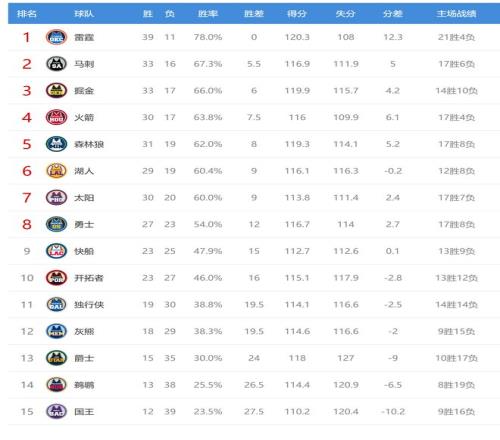雷霆贏球后39勝11負(fù)排名聯(lián)盟第一,掘金輸球后33勝17負(fù),排名從西部第二掉到第三,今日贏球的馬刺成為第二。掘金、湖人、太陽今日都輸球,給西部第四的火箭送上大禮,火箭和掘金的差距縮小到1.5個(gè)勝場(chǎng),火箭領(lǐng)先湖人、太陽的優(yōu)勢(shì)來到1.5個(gè)勝場(chǎng)。