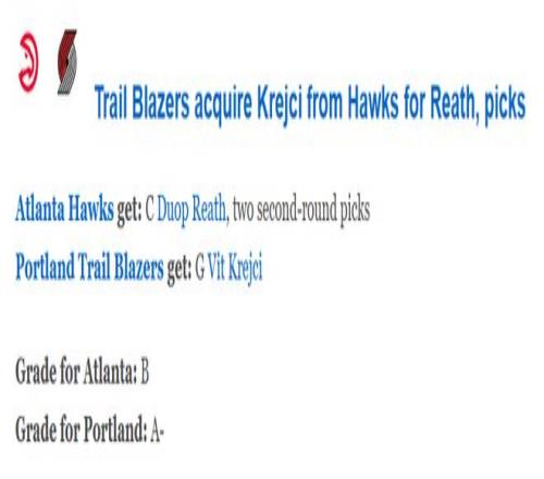 北京時間2月2日,開拓者和老鷹完成了一筆3換1的交易。開拓者送出已經賽季報銷的里斯以及兩個次輪簽(原屬于老鷹...