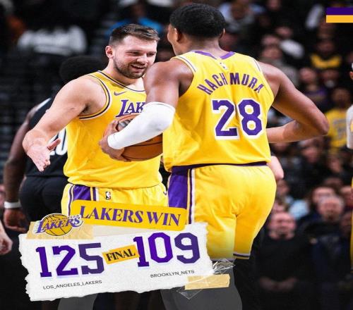 范德比爾特2罰1中,湖人領(lǐng)先25分,雷迪克換上板凳席末端的球員,比賽徹底失去了懸念??藘?nèi)克特?fù)寯?,布朗尼空接打進(jìn),夏普回敬2+1。蒂米補(bǔ)籃得分,沃爾夫里突外投連得5分,雷迪克請求暫停。兩隊(duì)在場上練兵,時(shí)間逐漸走完。最終,湖人以125比109完勝籃網(wǎng),結(jié)束了8連客。此役之后,紫金軍團(tuán)反超森林狼,重回西部第5。