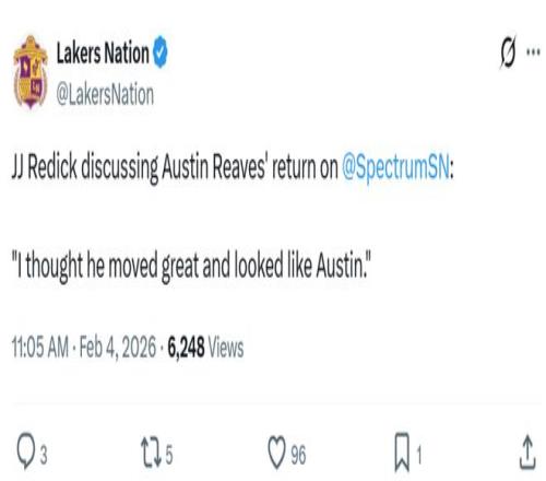 雖然還沒有完全找到比賽節(jié)奏,但對于攻防體系較為脆弱的湖人來說,能夠迎回里夫斯已經是巨大的利好,賽后雷迪克稱贊到:“他的移動很棒,看起來很像他自己。”