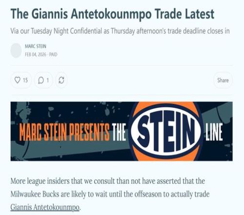 Substack名記Marc Stein也曝出紫金軍團的確在積極謀劃,計劃在2026年選秀夜之后利用三個可交易的首輪簽(2026年、2031年和2033年)與簽換權成為字母哥的主要追求者。
