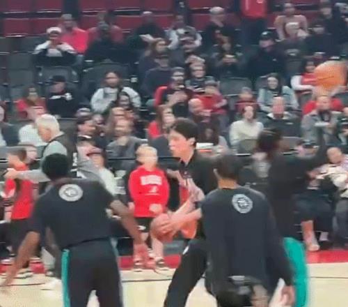 楊瀚森賽前積極熱身