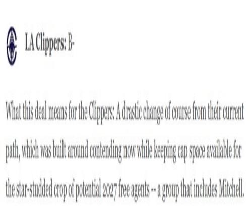 唯一的風(fēng)險(xiǎn)是加蘭的傷病問題與矮小的身材,這也是他們僅拿到B-的原因,但快船在如此艱難的困境中找到一條看起來(lái)是兩全的策略已經(jīng)實(shí)屬不易。