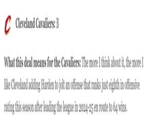 哈登1換2交易評(píng)分出爐兩隊(duì)雙贏!騎士交易后可進(jìn)可退獲B評(píng)分,快船困境中找到兩全之策同樣拿下不錯(cuò)的B-評(píng)分。哈...