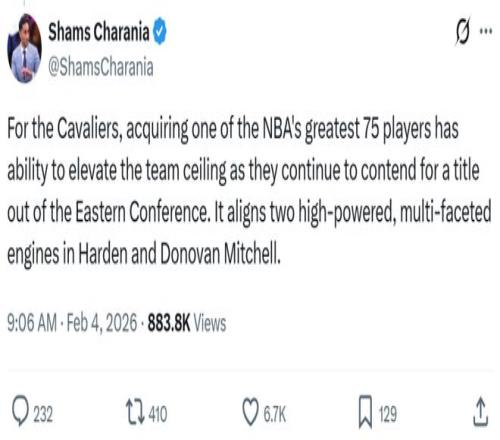 正如名記Shams所說(shuō):“對(duì)于騎士隊(duì)來(lái)說(shuō),引進(jìn)哈登這樣一名75大巨星顯然能夠提高球隊(duì)上限,他與米切爾的聯(lián)手將讓球隊(duì)有資格在東部競(jìng)爭(zhēng)冠軍。”