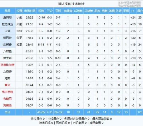 球員數(shù)據(jù):湖人:詹姆斯25分3板7助3斷、東契奇24分6板5助、拉拉維亞18分5板、里夫斯15分4板1助2斷、海斯9分1板2...
