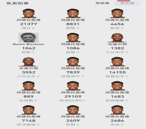 整個雄鹿生涯,字母哥打了889場常規(guī)賽,場均得到24分9.9籃板5助攻1.1搶斷1.2蓋帽3失誤,三項命中率:55.4%,28.6%,69.2%。字母哥的總出場數(shù)、得分、籃板、助攻、蓋帽、投籃出手和命中數(shù)等數(shù)據(jù),均是雄鹿隊史第一。