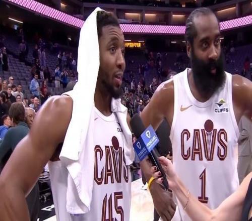 賽后米切爾也談到了哈登加盟騎士,米切爾說他和哈登是老朋友了,他一直相信哈登。