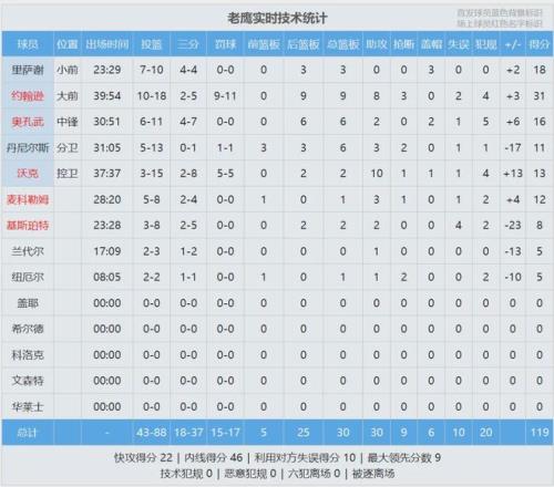 最后看看本場數(shù)據(jù),你覺得今年黃蜂能重返季后賽嗎?