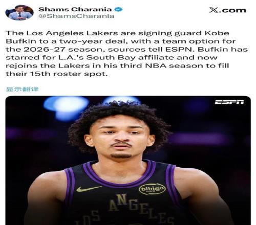 湖人15人陣容滿員:兩年合同簽巴夫金G聯(lián)賽曾轟41+8+8三分