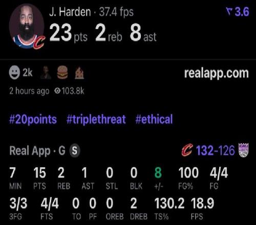 哈登騎士首秀先抑后揚,上半場6中1,下半場7中6包括關(guān)鍵時刻連續(xù)轟進(jìn)兩記三分球,最終全場出戰(zhàn)約32分鐘,投籃13中7(三分8中5),罰球4中4貢獻(xiàn)23分2板8助1斷,帶隊132-126擊敗國王。