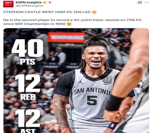 狂轟40分12板12助,4號(hào)秀刷爆紀(jì)錄搶?xiě)蛭陌?!馬刺4大新星天賦溢出