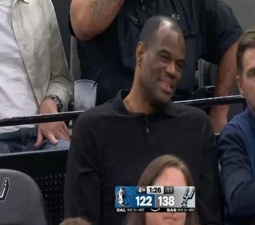 無獨(dú)有偶,隊(duì)史首人、馬刺名宿“海軍上將”大衛(wèi)·羅賓遜今日正好也在現(xiàn)場觀戰(zhàn)。