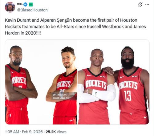 面對申京遞補(bǔ)入選全明星,不僅是火箭隊(duì)官方第一時(shí)間曬出海報(bào)慶祝,一同攜手創(chuàng)造紀(jì)錄的杜蘭特也轉(zhuǎn)發(fā)海報(bào)恭喜到:“祝賀28號(hào),兩次入選了,以后還會(huì)有更多?!?/p>