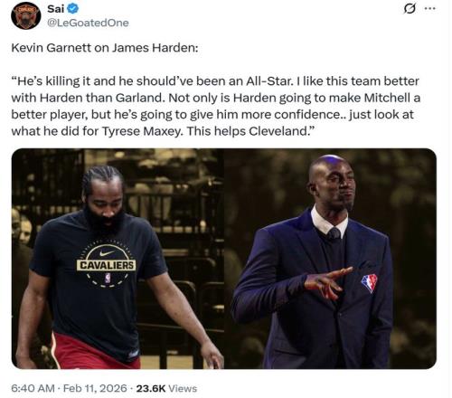 NBA名宿加內特也持有相同觀點,認為哈登無論是在快船的表現,還是加盟后騎士對于米切爾的幫助,都讓其有資格入選全明星。