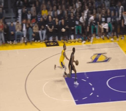 以及一個空接扣籃——好笑的是,球扣進去,手夠到筐,腳尖也落地了,字面意義的踮腳扣籃。