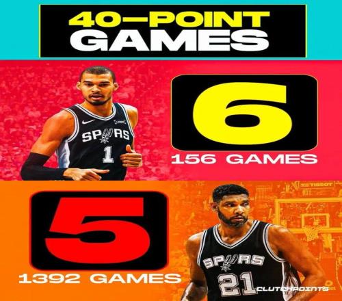 ——這是文班亞馬生涯第6次40+,超越鄧肯(5次),升至隊史第4