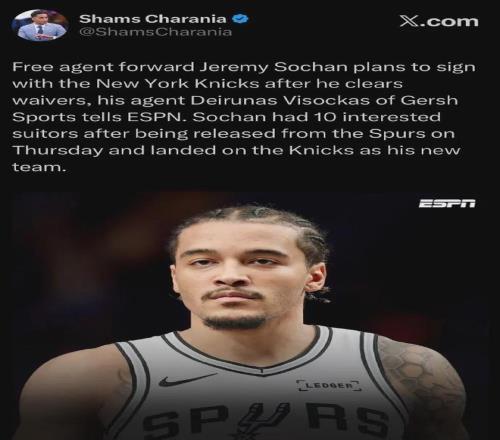 索漢和托馬斯一樣,進(jìn)入買斷市場(chǎng)就立刻有新東家接手,已經(jīng)決定加盟身處國(guó)際大城市紐約的尼克斯。