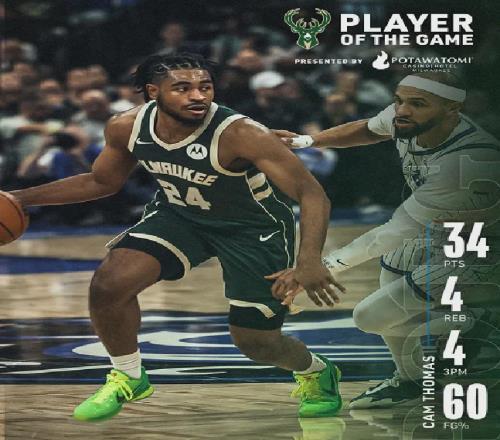 卡梅倫-托馬斯,年僅24歲,21屆首輪第27號(hào)秀,1米91雙能衛(wèi),曾在籃網(wǎng)連續(xù)兩個(gè)賽季場(chǎng)均得分20+,然而本賽季交易截止日后就被裁掉,緊接著把天賦帶到了雄鹿。