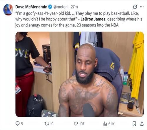賽后詹姆斯接受采訪:我就是一個(gè)41歲的老咕嚕棒子,我就是登場(chǎng)打球,他們?cè)敢飧跺X讓我打球,我有什么理由不高興呢?(這句話大概率已經(jīng)說(shuō)明詹姆斯對(duì)湖人管理層失誤了)