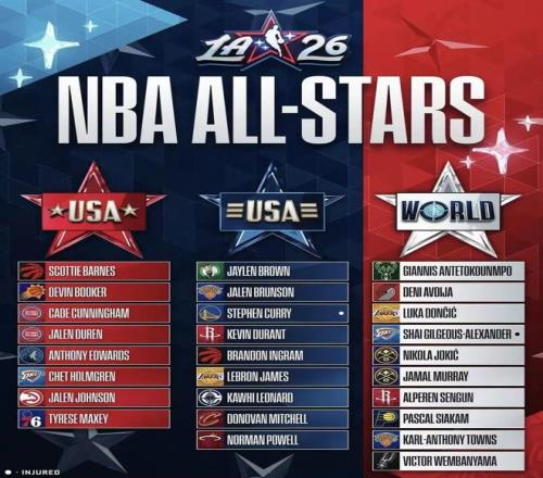美國隊分為“美國星隊”和“美國條紋隊”,從名單來看,“美國星隊”主要集中了一眾新生代球員,布克、愛德華茲、霍姆格倫、馬克西以及本賽季志在沖擊MVP的活塞當家球星康寧漢姆領銜;“美國條紋隊”則是一眾NBA門面球員,詹杜庫同隊以及布倫森、布朗、倫納德等實力球員。其中,庫里因傷缺陣本次全明星,聯(lián)盟指派猛龍球員英格拉姆遞補進入名單。