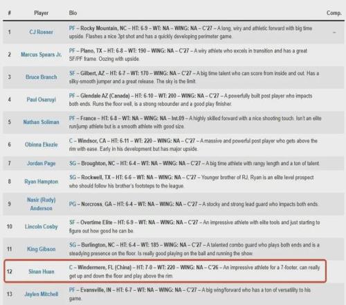 可以保持正常發(fā)展乃至更進(jìn)一步的話,最重要的是防止重大傷病出現(xiàn),那么郇斯楠NBA前景非常明朗,之前美媒NBA Draft Room預(yù)測(cè)他會(huì)在28屆首輪第12順位被選中。