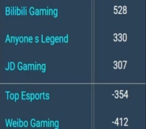 電競體育2月13報道 外網(wǎng)數(shù)據(jù)網(wǎng)站統(tǒng)計(jì)LPL第一賽段常規(guī)賽登峰組隊(duì)伍前15分鐘經(jīng)濟(jì)差:BLG第一528。