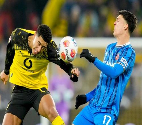 第40分鐘,洪薩克犯規(guī),被出示黃牌。4分鐘后,多特蒙德進(jìn)球了!門將出擊接高空球脫手失誤,安東抓住機(jī)會(huì)勁射破門。不過,很快海登海姆就扳平比分。尼許斯射門被擋出,倒在地上的他再射一腳,把球打進(jìn)。半場結(jié)束,多特蒙德1-1海登海姆。多特蒙德上半場控球率66%,10次射門,3次射正,進(jìn)了1球。而海登海姆上半場只有4次射門,同樣進(jìn)了1球。