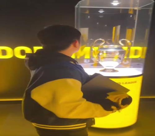 比賽開始之前,波爾帶著樊振東去多特蒙德的獎杯陳列室參觀,首先映入眼簾的是歐冠獎杯,1997年多特蒙德。在1997年歐冠決賽,多特蒙德在慕尼黑奧林匹克球場以?3-1戰(zhàn)勝尤文圖斯?,首奪歐冠冠軍,也是德甲歷史上除拜仁外唯一奪得過歐冠的球隊(duì)。