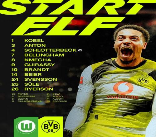 北京時(shí)間2月7日22:30,德甲第21輪,多特客戰(zhàn)沃爾夫斯堡。賽前首發(fā)公布。