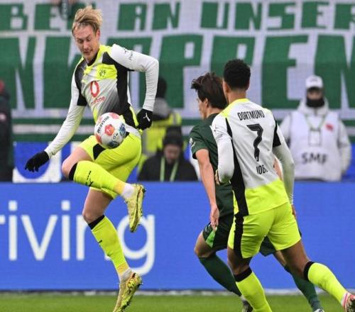 第31分鐘,拜爾在禁區(qū)中路包抄勁射,皮球被擋了一下?lián)糁虚T框彈了出去。真是不可思議。沃爾夫斯堡逃過一劫。7分鐘后,多特蒙德抓住了機會。瑞爾森開出角球,布蘭特在前點頭球攻門,球進了!這記頭球難度極大。多特蒙德取得領(lǐng)先。半場補時階段,喬布-貝林厄姆嘗試一腳遠射,被撲了出去。半場結(jié)束,多特蒙德1-0領(lǐng)先沃爾夫斯堡。