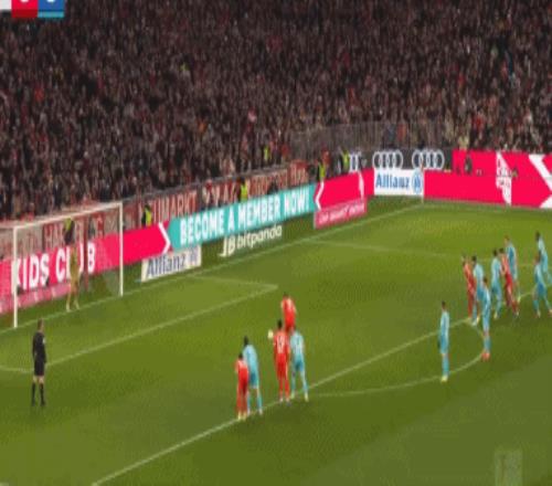 比賽的第17分鐘,迪亞斯禁區(qū)內(nèi)被阿克波古馬拉倒,主裁判判罰點(diǎn)球并且向阿克波古馬出示紅牌。凱恩主罰點(diǎn)球勁射破門,1比0!
