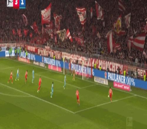 第45分鐘,迪亞斯再造點(diǎn),凱恩點(diǎn)射雙響,拜仁2-1霍芬海姆